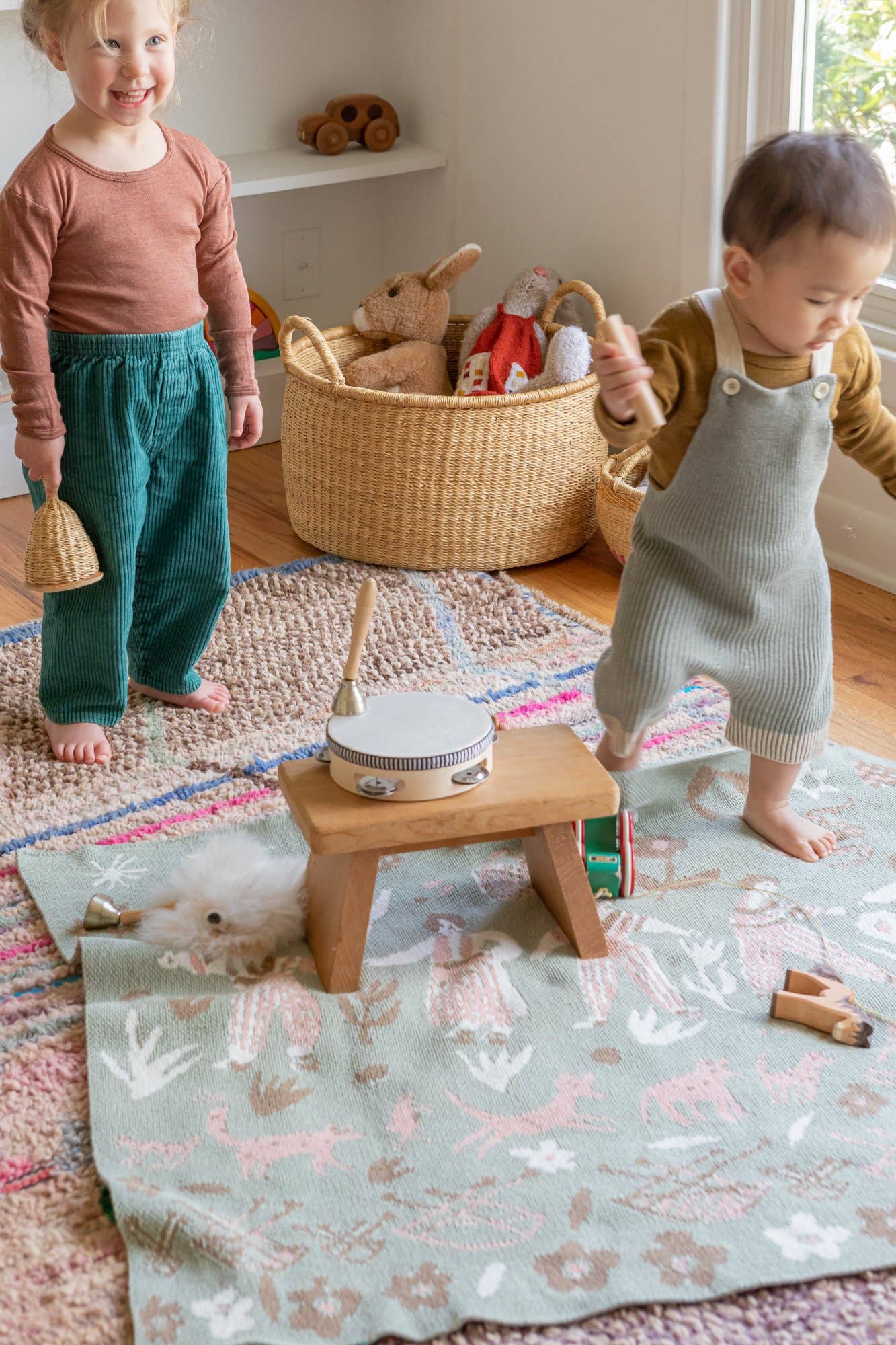 Sleep tight beneath forest friends as they gather together to harvest crops. Enjoy this peaceful scene and rejoice in the interconnectedness that surrounds us.