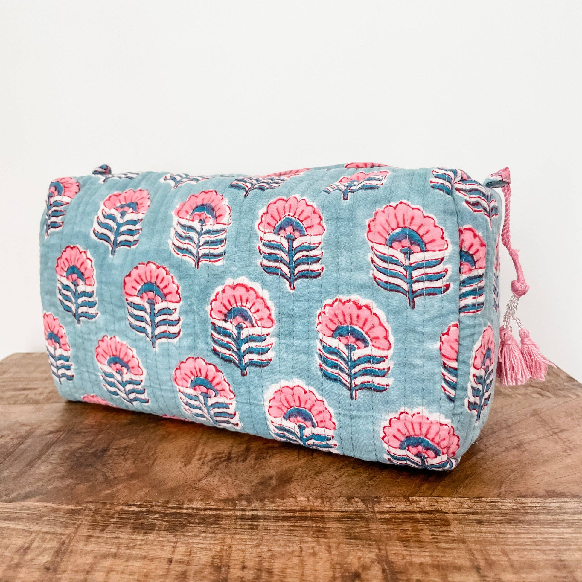 Bring along a fun splash of color and pattern on your next trip! These block printed pouches are the perfect accessory for storing toiletries, cosmetics and jewelry, either on the go or perched on a dresser at home. These also make a wonderful gifting item for birthdays, graduations and other special occasions.