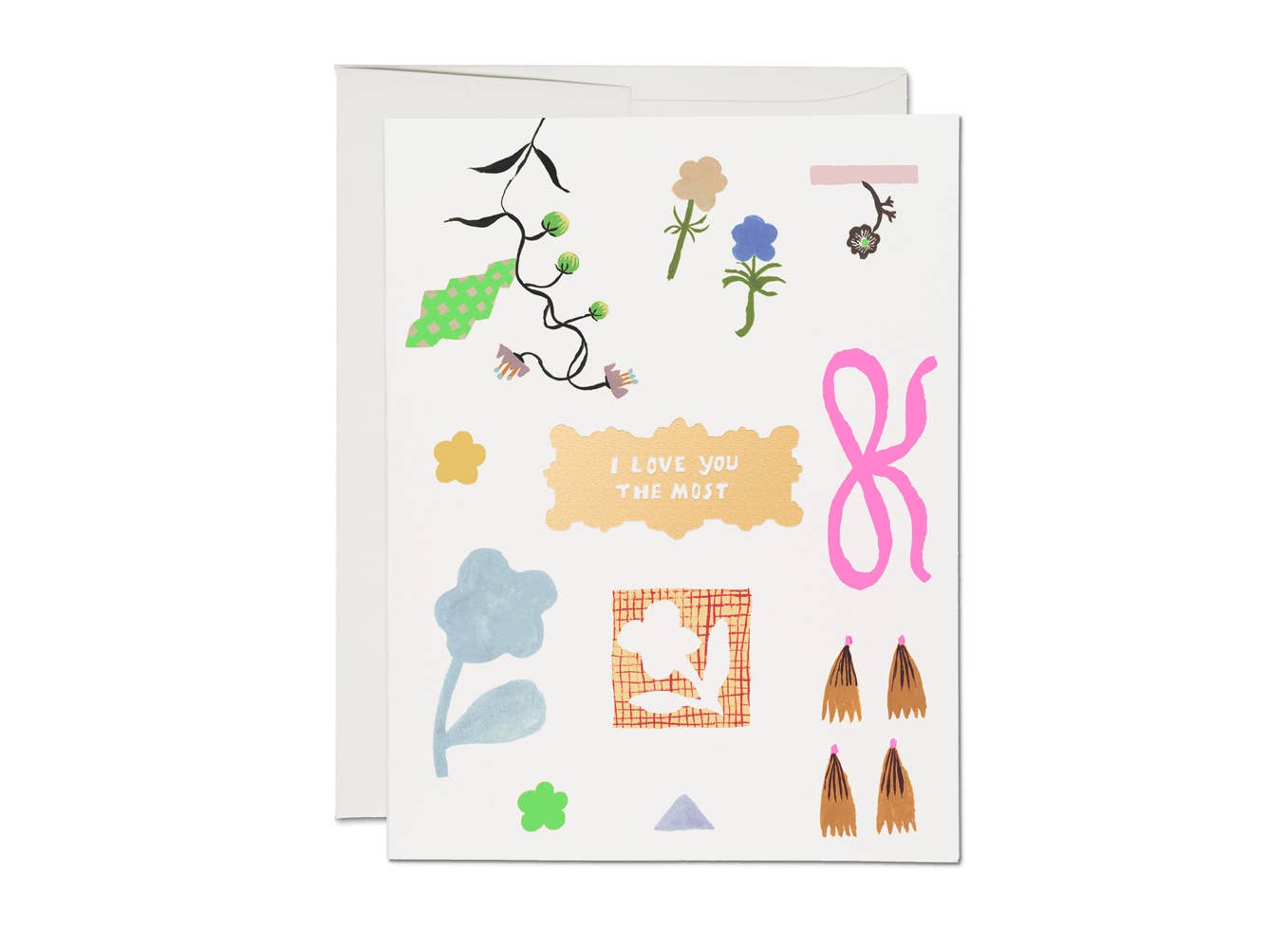 Blank inside. 100lb heavyweight card stock. Offset printed and foil stamped. 5.5 x 4.25 inches. Illustrated by Emily Isabella. Printed by Red Cap Cards in Los Angeles, California, USA, on recycled paper.