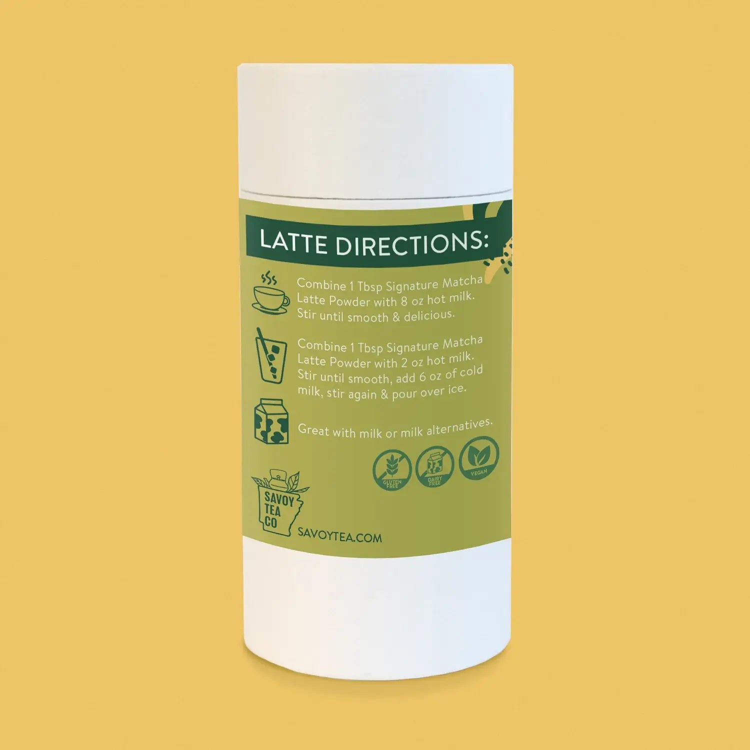 Hot Latte Directions: Combine 1 Tbsp of Signature Matcha Latte Powder with 8 ounces of hot milk. Stir until smooth and delicious.